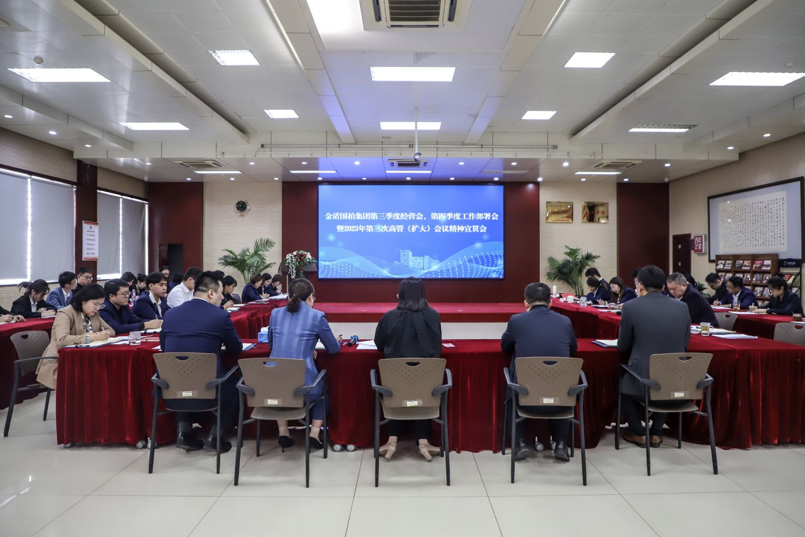 金諾國拍集團(tuán)總裁位琳首先就第三季度各部門的工作情況進(jìn)行總結(jié)點評,充分肯定了各部門取得的工作成果,表示前三季度重點任務(wù)有序推進(jìn),各項工作穩(wěn)中有進(jìn)。隨后,她傳達(dá)了高管(擴大)會議上沃爾德建設(shè)咨詢集團(tuán)總裁梁訓(xùn)棟題為《品牌!品牌!品牌!》報告,沃爾德文旅產(chǎn)業(yè)集團(tuán)執(zhí)行總裁陳奕霖題為《做好“沃爾德”品牌的建設(shè)者和講述人》報告,沃爾德集團(tuán)總裁、金諾國拍集團(tuán)董事長商雪梅題為《企業(yè)自主創(chuàng)新之路的“變”與“不變”》報告與沃爾德集團(tuán)董事長林擘題為《共克時艱 互助發(fā)展》報告的主要內(nèi)容。表示要以“穩(wěn)中求進(jìn)、守正創(chuàng)新”為指導(dǎo)思想,貫徹落實2023年第三次高管(擴大) 會議提出的人才興業(yè)、和客戶在一起、相互賦能、互助發(fā)展等理念,號召全體員工接續(xù)奮斗,堅定打好攻堅戰(zhàn)的信心和信念!
