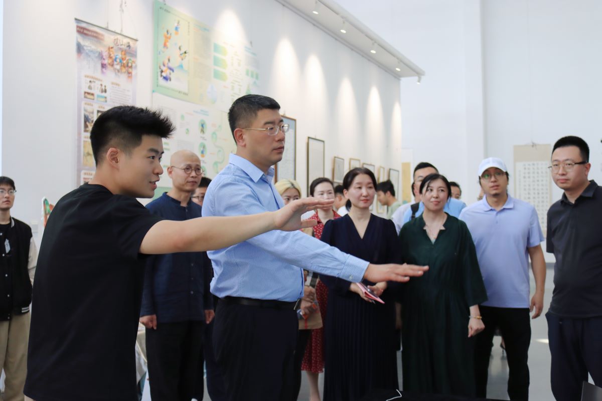 山東省文物保護修復與鑒定中心主任王斌代表合作共建單位致辭,表達了發揮本單位專業技術和科研團隊優勢,組織師生參與文物保護與修復工作,結合學校需求,深度參與藝術學院專業建設和學生培養的情懷和希冀;藝術學院副院長(主持工作)宋述林在致辭中感謝學校各部門和社會各界的厚愛和支持,表示學院將充分挖掘、利用校內外資源,堅持特色發展,全面提升教育教學質量;與會嘉賓為校圖書館、法國高等對外貿易學院孔子學院、藝術學院收藏作品,優秀修復作品、優秀設計類作品獲得者頒獎;2020級美術學專業袁美娥代表畢業生發言。開幕式結束后,與會領導嘉賓一起參觀了畢業作品。