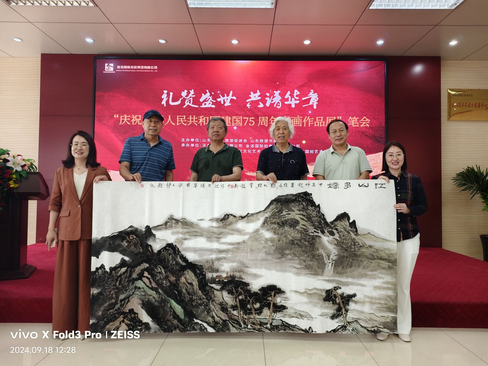 七十五載風雨兼程,七十五載砥礪前行,為慶祝中華人民共和國75周年華誕,9月18日,山東省精品旅游促會在省旅促會副會長單位沃爾德集團展開了一場精彩書畫筆會。活動由省委原副秘書長、山東省精品旅游促進會會長杜文彬帶隊,著名書畫藝術家梁文博、劉玉泉、蕭維永、戴月、韓英偉、趙英水、馬林春、韓新濰、劉勝軍、郭執銓、孫華進、董廷新等參加,省旅促會副會長、沃爾德集團董事長林擘,沃爾德集團總裁、金諾國拍集團董事長商雪梅,金諾國拍集團總裁位琳陪同。