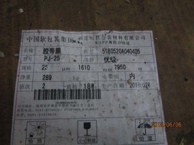 受委托,公司將于近期處置20卷膠帶膜,標(biāo)的位于廣東省東莞市。